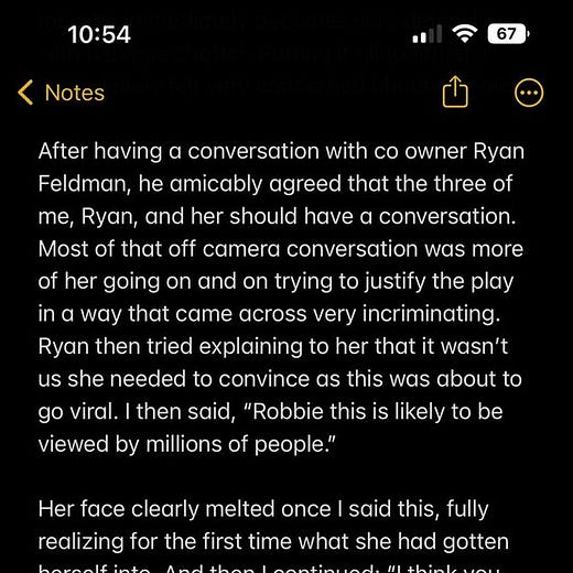 Other stuff happened. He tweeted about it, she tweeted about it. Later, after a private conversation, she gave back the money she’d won. Below is his version of what happened before and during that conversation. You might think that giving the money back was proof of cheating but I could also see it as her afraid people would think she cheated (which some people will think anyway).